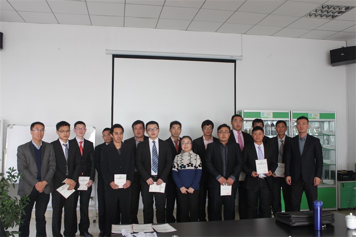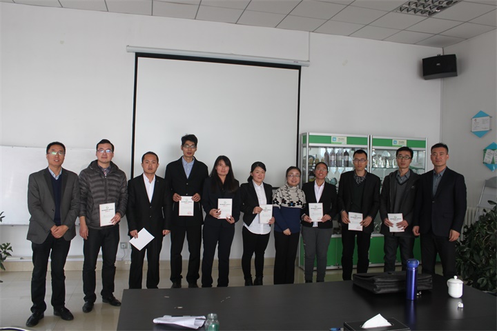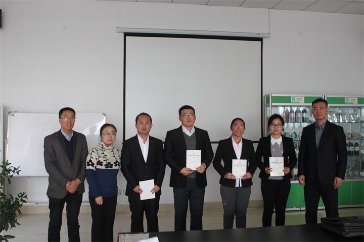 隨后,張濤女士、孫志剛先生、張宗國先生依次頒發(fā)了生產(chǎn)技工序列、化驗(yàn)序列、市場技術(shù)序列、研發(fā)序列的技能證書,并與大家合影留念。